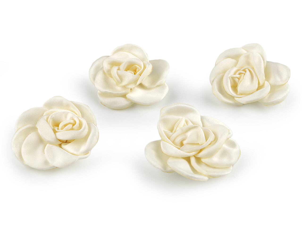 Saténový květ růže k našití a nalepení Ø5 cm - 10 ks - 2 krémová světlá