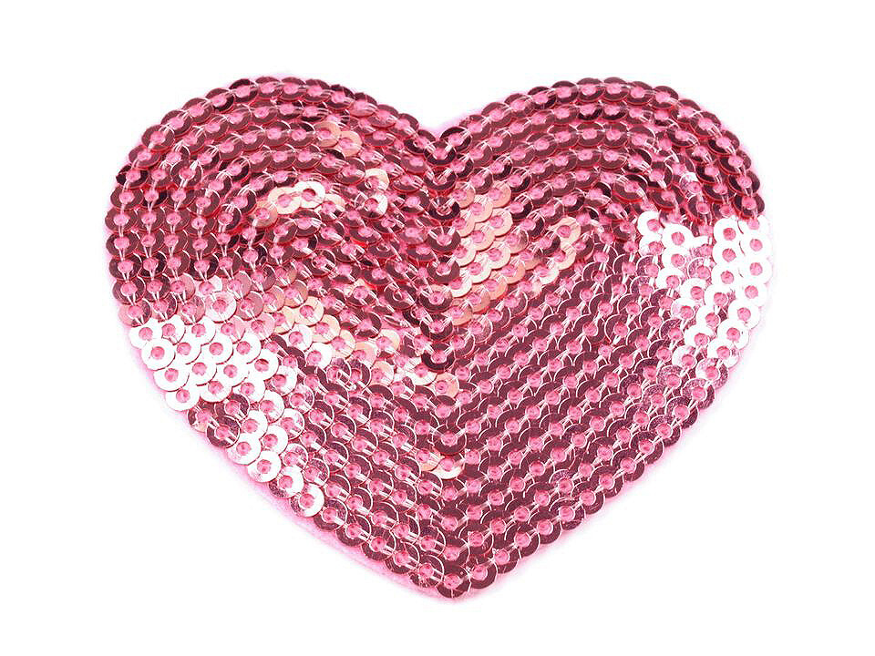 Nažehlovačka srdce s flitry - 10 ks - 3 růžová světlá