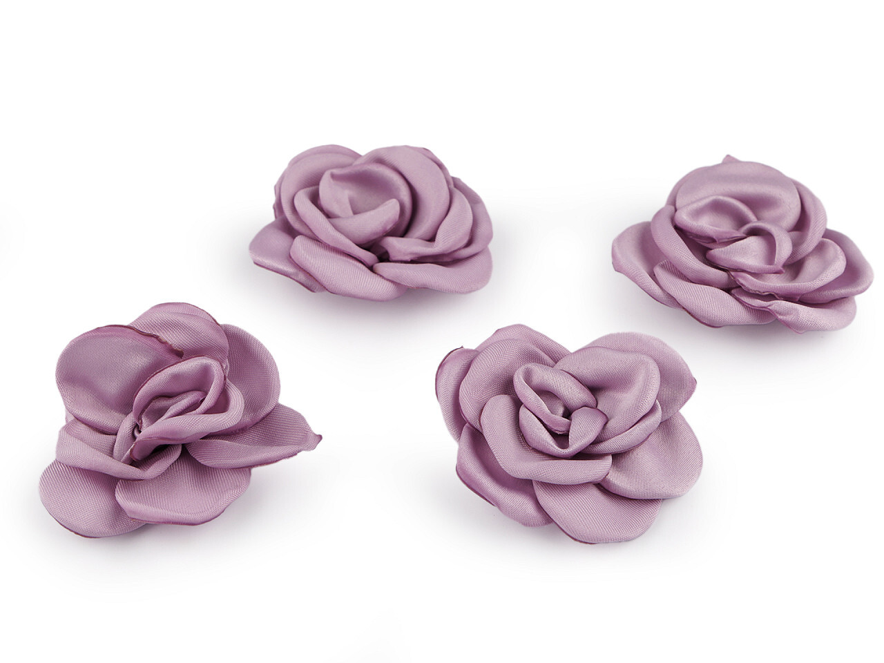 Textilní saténové květy jsou precizně zpracované. Mají jemný saténový lesk. Ve spodní části mají filcové kolečko, díky kterému je můžete pohodlně kamkoliv upevnit. Můžete je našít či nalepit jako ozdobu na šaty, halenky apod.