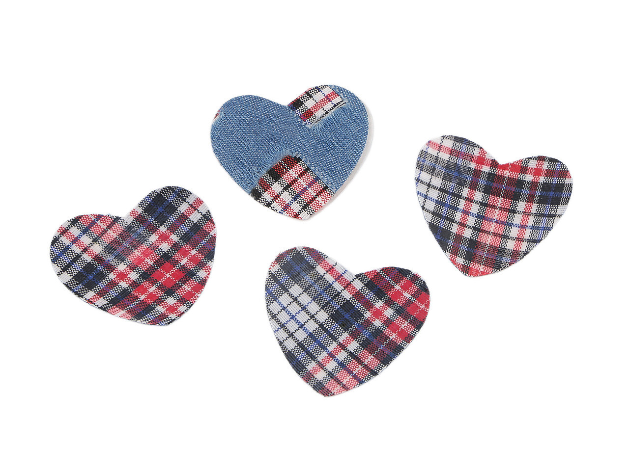 Nažehlovačky ve tvaru srdíček vyniknou jak na oblečení, tak na doplňcích jako jsou tašky, klobouky, batohy, kšiltovky apod. Srdíčka na sobě mají designové záplaty.