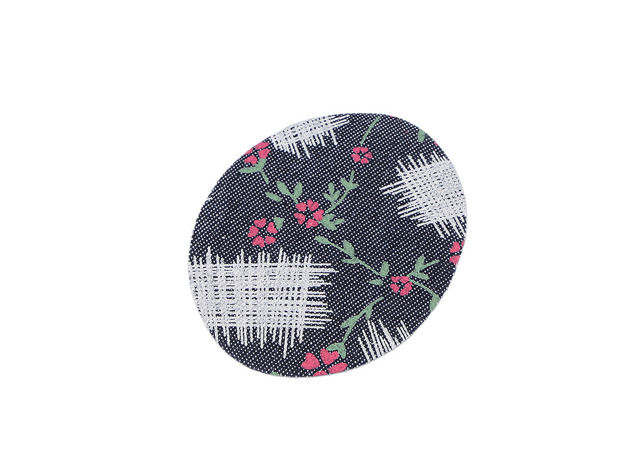 Nažehlovačka ve tvaru oválu vynikne jak na oblečení, tak na doplňcích jako jsou tašky, klobouky, batohy, kšiltovky apod. Má na sobě potisk záplaty a květů. Zakryje dírky a drobné nedostatky. Má ideální velikost k použití na malá dětská kolena či lokty.