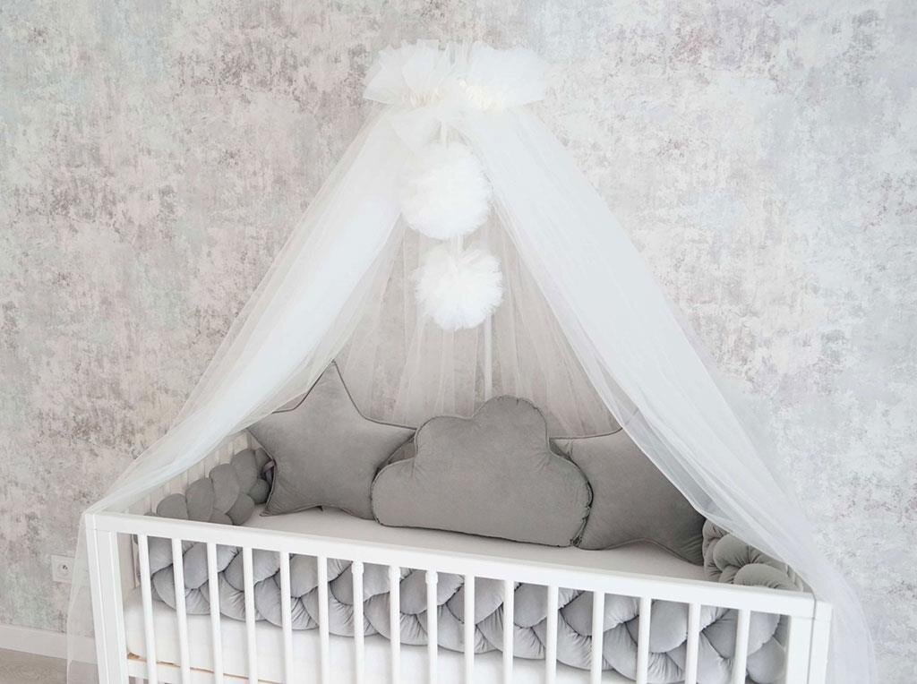 Luxusní tylové nebesa s bambulkami-baldachýn Belisima. Nebesa zavěšená nad postýlkou zajistí klidný spánek bez nepříjemného hmyzu. Jsou velice užitečná v teplých letních dnech, nebo jako skvělá dekorace. Umožňují volný průchod vzduchu. Nebesa jsou zdobena krásnými bambulkami. Upevňují se zavěšením na držák. Dodávané bez upevňujícího držáku. Možnost dokoupení držáku v našem e-shopu. ID produktu je 1768.