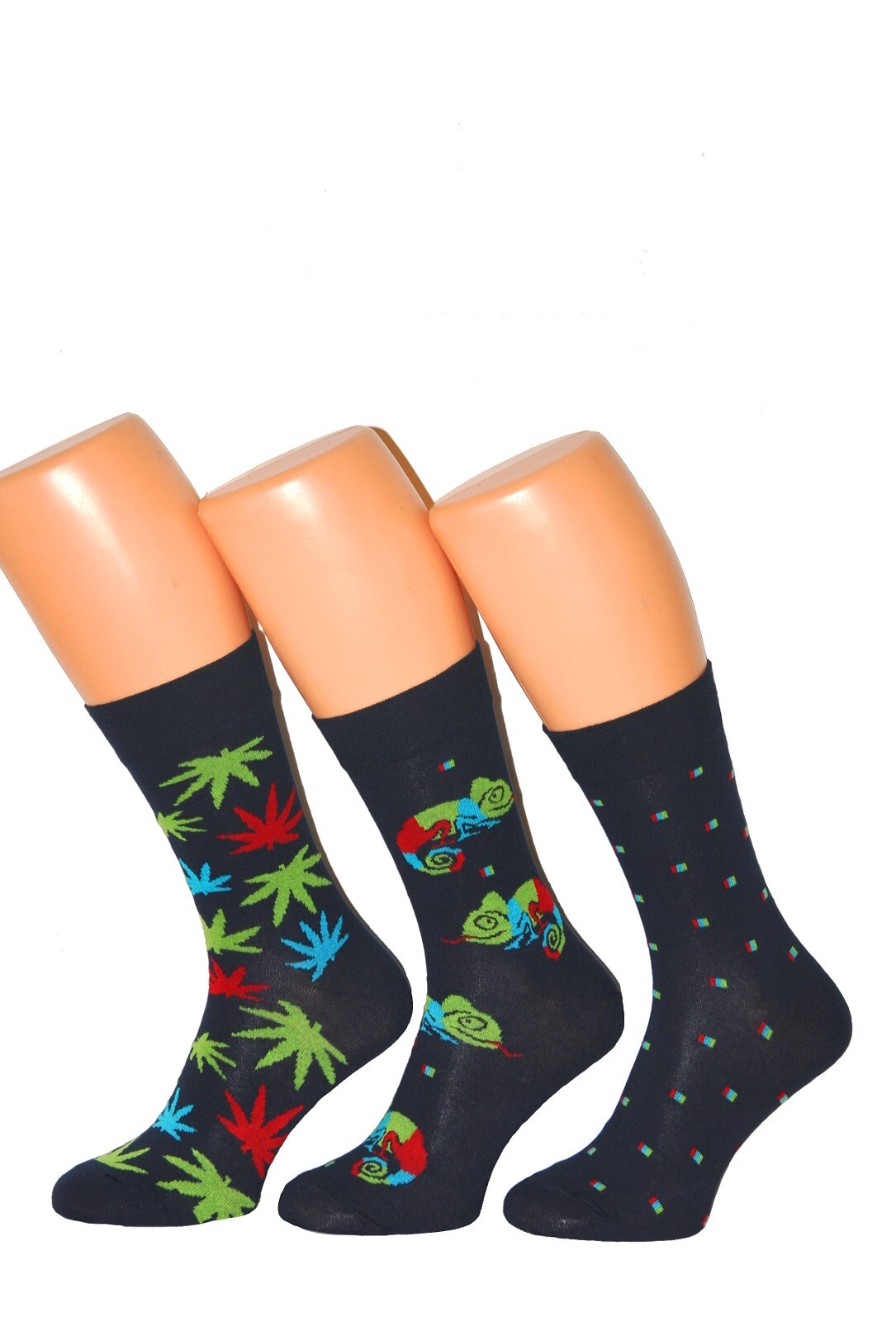 Wzorzyste skarpety męskie- wysokiej jakości bawełna- płaskie szwy- nieuciskający ściągacz- wyprofilowana pięta- zapewniają wygodę i komfort użytkowania- pakowane w pudełko po 3 pary