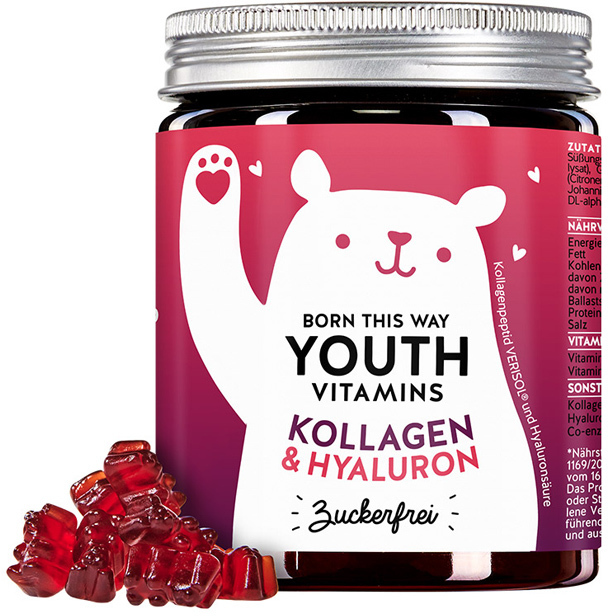 Gumoví medvídci pro mladší a krásnější pleť. Koncentrovaný koktejl anti-age koktejl obsahuje patentovaný kosmetický kolagen, který pleti navrací pružnost a mládí. Jeho účinky posiluje hloubkově hydratační kyselina hyaluronová a omlazující koenzym Q10. Bez obsahu cukru, doslazeno přírodní stévií.