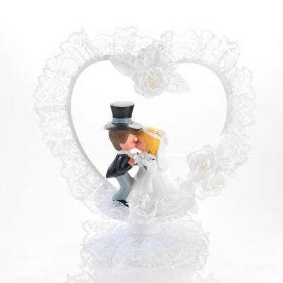 Svatební figurka na dort 1ks porcelánová polibek se srdcem - Gunthart