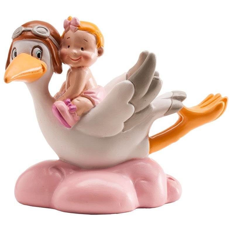 Figurka na dort holčička a letící čáp na mráčku 10cm - Dekora