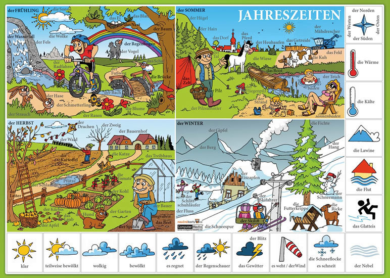 * kartička obsahuje základní slovní zásibu k obdobní jara, léta podzimu a zimy