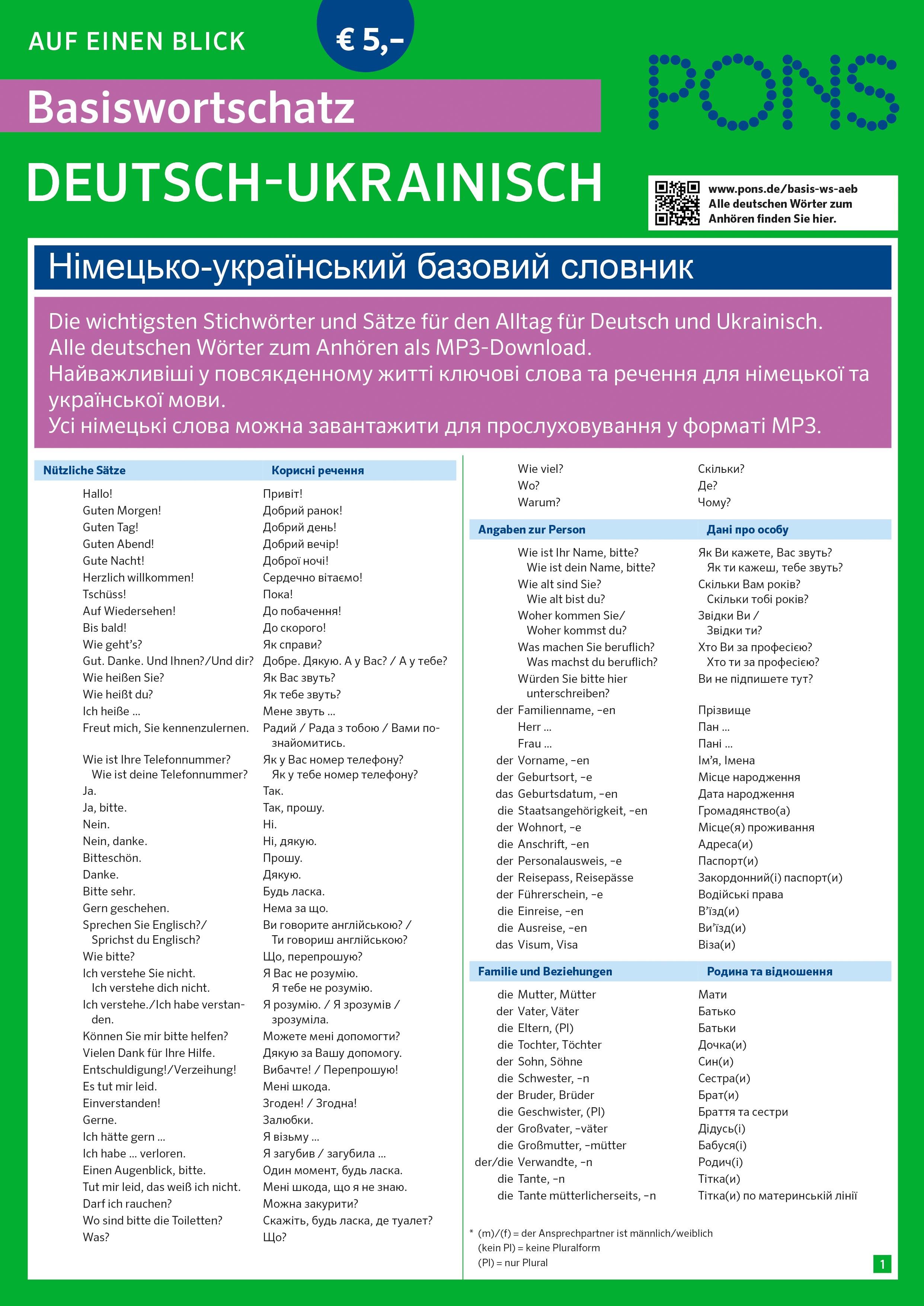 PONS Basiswortschatz auf einen Blick Deutsch-Ukrainisch