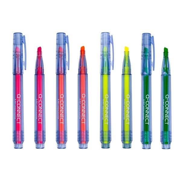 Zvýrazňovače vyrobeny z recyklovaných PET lahví;Sada 4 barev (žlutá, oranžová, růžová a zelená);Hrot 4,6 mm, šíře stopy 1 a 4 mm