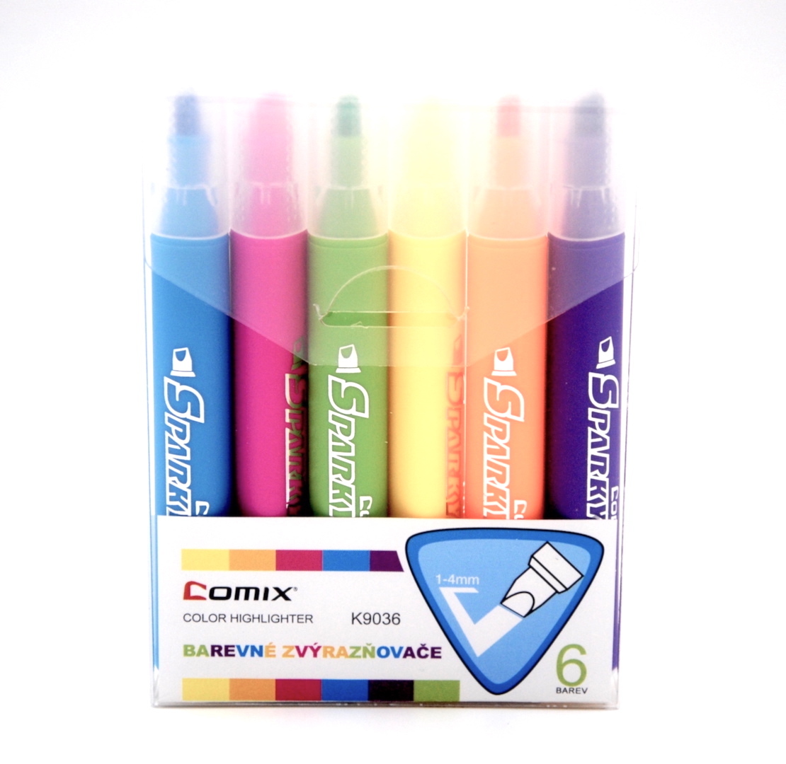 Zvýrazňovač Sparky sada 6ks Comix K9036 zajišťují komfortní použití díky svému klínovému hrotu o šířce 1-5mm a nerozmazávajícímu, rychleschnoucímu inkoustu. Mezi jejich přednosti se také řadí jejich velmi dlouhá životnost. Sada obsahuje 6 ks zvýrazňovačů.