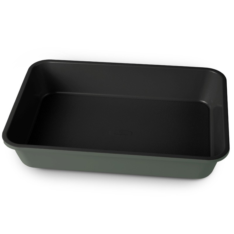 Tento podlouhlý pekáč v matné zelené je ideálním pomocníkem pro každého, kdo hledá spojení moderního designu, vysoké odolnosti a zdravého vaření. Vyroben z kvalitní uhlíkové oceli a opatřen trojitým nepřilnavým povrchem TitanPro, který zajišťuje vynikající odolnost proti poškrábání a snadné čištění. Díky elegantnímu vzhledu a praktickým rozměrům je vhodný jak pro každodenní pečení, tak pro slavnostní příležitosti.