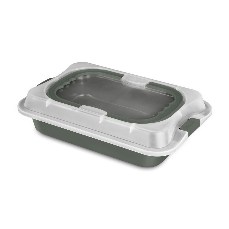 Dopřejte si pohodlné a efektivní pečení s přenosným plechem na pečení s víkem z kolekce Matte Green Collection. Ideální pro každodenní použití i speciální kulinářské projekty - praktický, odolný a ekologicky šetrný.