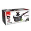 Litý hliníkový rendlík se skleněnou poklicí 16 x 8 cm s odnímatelnou rukojetí ADVANTAGE je opatřen vnitřním 3vrstvým nepřilnavým povrchem ILAG ULTIMATE SWISS Technology a vnějším žáruvzdorným 2vrstvým nástřikem. Rendlík má bakelitovou rukojeť se soft touch povrchovou úpravou, kryté indukční dno pomocí žaruvzdorného nástříku a odnímatelnou rukojeť, která umožňuje použití rendlíku do trouby (bez poklice) a zárověň pomáhá ušetřit prostor v kuchyni. Poklice je opatřena silikonovým černým návlekem.