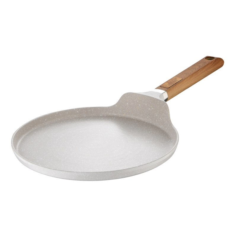 Přirozeně vám přináší palačinkovou pánev o průměru 24 cm, která díky vysoce kvalitní konstrukci z litého hliníku optimálně udržuje teplo pro pomalé a šetrné vaření jídla. Ideální lívanečník pro přípravu sladkých i slaných receptů v ideální velikosti. Manipulujte s kusem bezpečně díky ergonomické dřevěné rukojeti měkké na dotek pro dokonalé uchopení. Užijte si kolekci navrženou s tečkovanou indukční základnou vhodnou pro všechny varné desky na trhu a její krémovou barvu s jemnými zlatými a bílými tečkami, která dodá vaší kuchyni hřejivý pocit. Snadno se čistí, pro prodloužení životnosti výrobku se doporučuje ruční mytí.