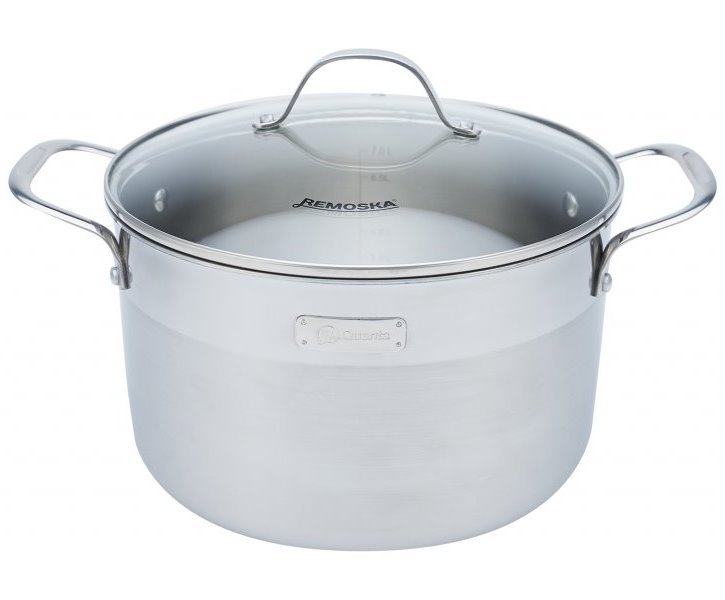 Remoska Quanta je vysoce kvalitní nerezové nádobí, jehož zakoupením povýšíte vybavení své domácí kuchyně na úroveň profesionála. Hrnec je vyroben z materiálu kombinujícího teplotní vodivost hliníku a zároveň zdravotní nezávadnost a odolnost nerezového plechu. Uvnitř je opatřen praktickými odměrnými měrkami a venku je osazen celokovovými ergonomickými nýtovanými držadly. Skleněná poklice z tvrzeného bezpečnostního skla je osazena parním ventilem, který zajišťuje odvod nadbytečné páry a nerezovým okrajem po obvodu profilu pro snadný odtok zkondenzované páry zpět do nádoby.