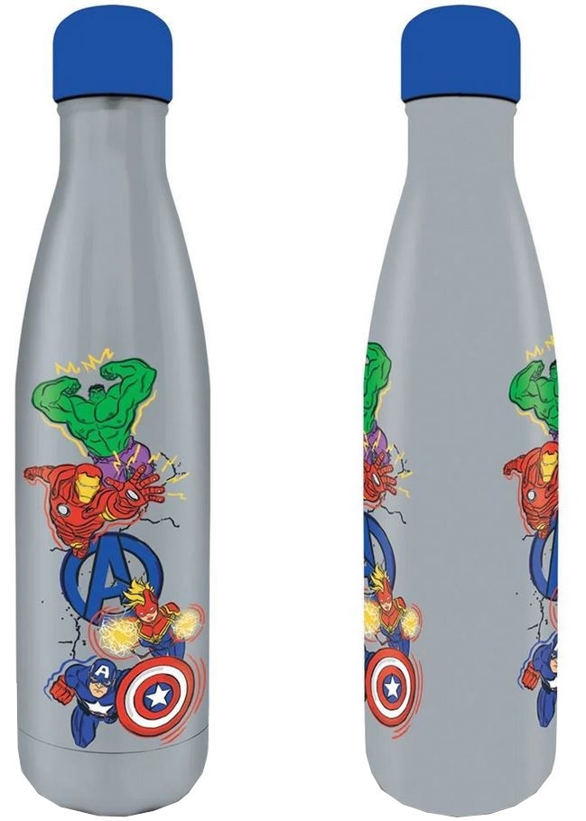 Oficiální produkt: nerezová láhev na pití z katalogu výrobků s grafikou a licencí populárních hrdinů Avengers od společnosti Marvel.