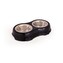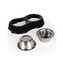 Dvě nerezové misky v černém plastovém stojanu, které lze nezávisle na sobě snadno vyjmout, a které lze omýt. • Doplněno o protiskluzové, pryžové nožičky