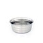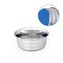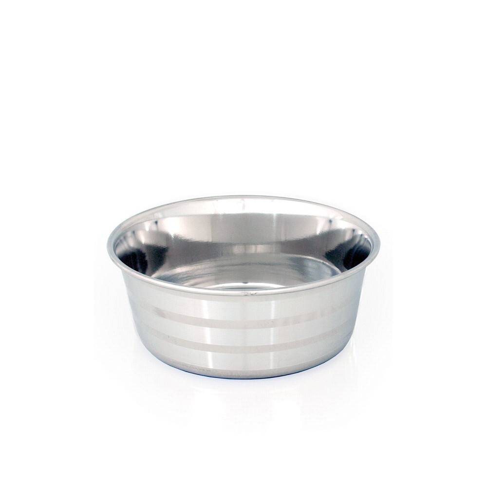 Nerezová miska zdobená o gravírované pruhy s protiskluzovým silikonovým dnem v modré barvě. Vhodná jako základní miska na vodu i na krmivo.