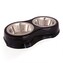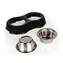 Dvě nerezové misky v černém plastovém stojanu, které lze nezávisle na sobě snadno vyjmout, a které lze omýt. • Doplněno o protiskluzové, pryžové nožičky