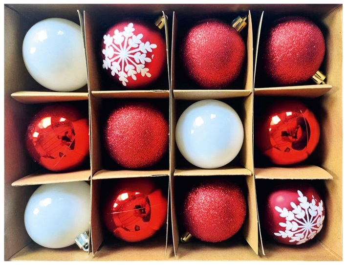 Sada plastových baněk 6 cm, 12 ks v krabičce, červené