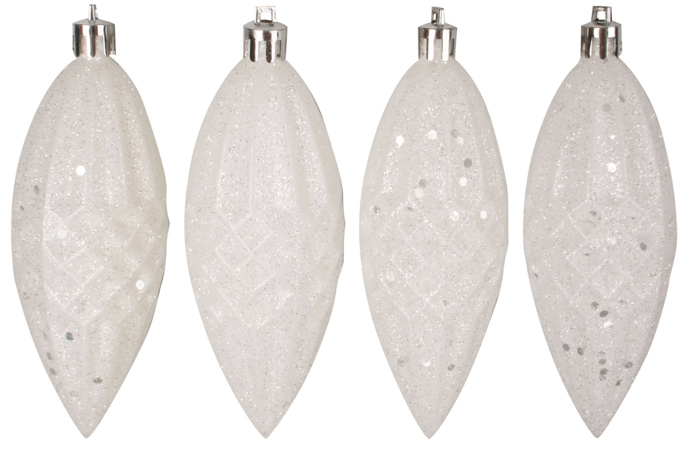 Kapky bílé s flitry 12cm, 4ks v krabičce