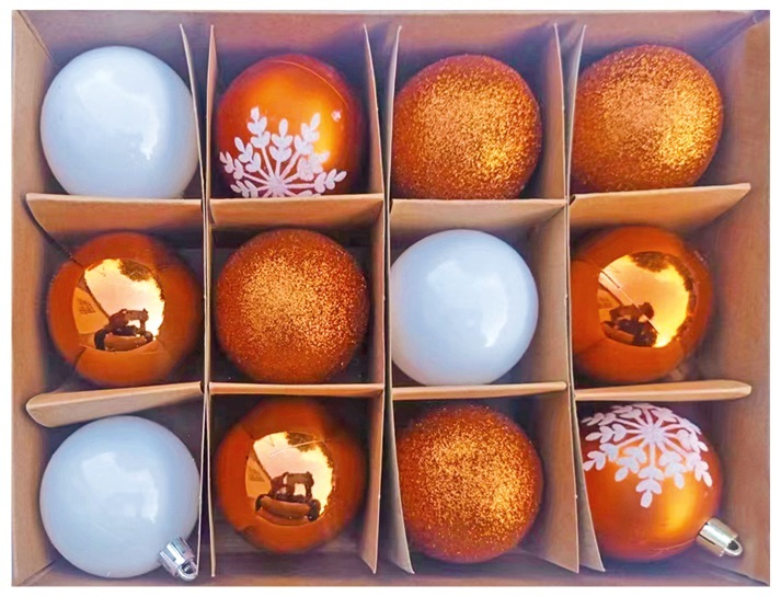 Sada plastových baněk 6 cm, 12 ks v krabičce, měděné