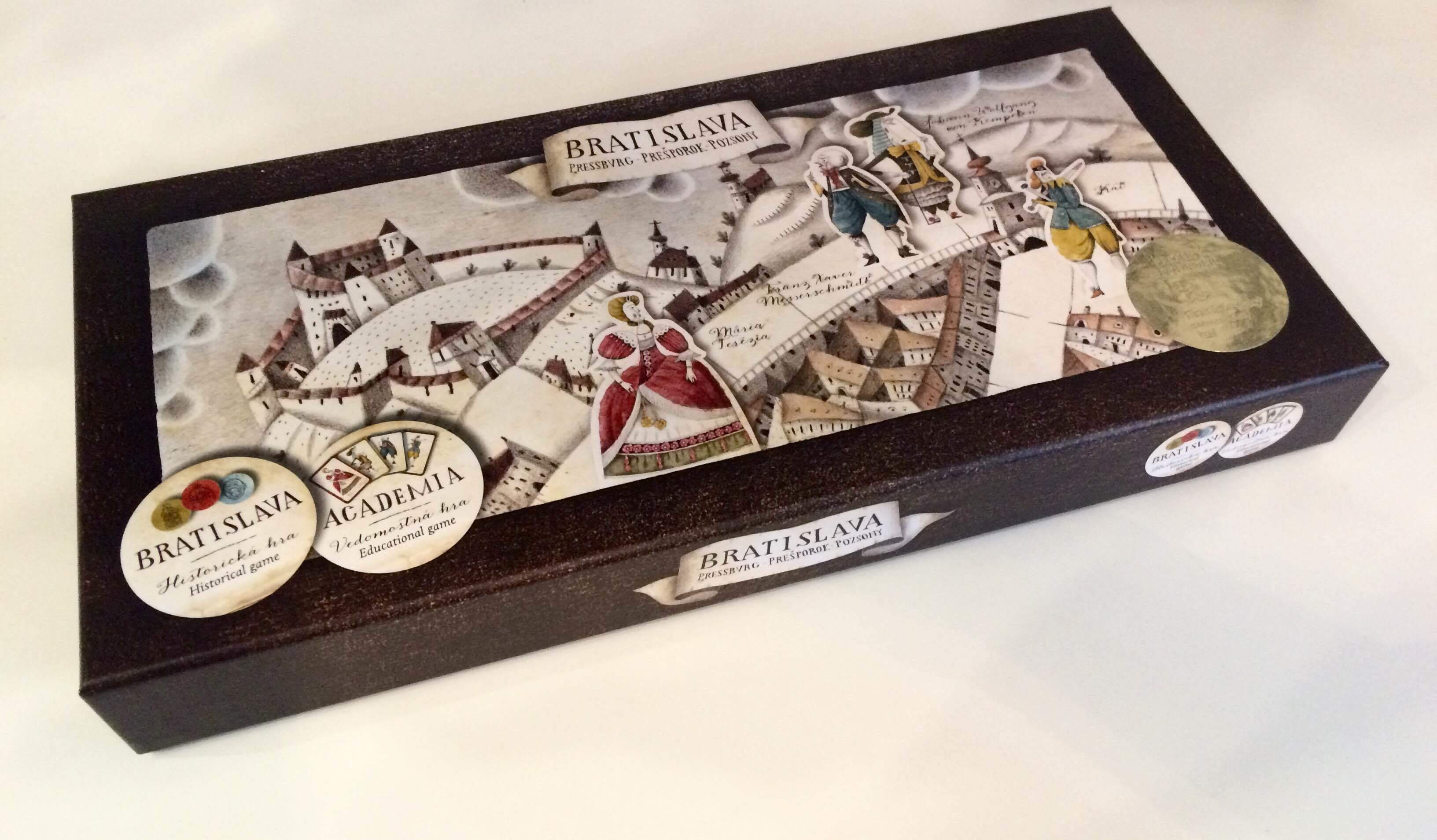 Historická hra vychádza z reálií starého mesta Prešporok - herný plán bol navrhnutý na podklade starej historickej mapy. Nájdete na ňom hlavné ulice mesta, ale aj významné stavby, či zákutia, ktoré sú sú vám známe. Na podklade, ktorý vás očarí romantickou atmosférou barokového Prešporka sa premávajú figúrky dobových obyvateľov mesta - kráľovnej Márie Terézie, Johanna Wolfganga von Kempelena a Franza Xavera Messerschmidta. Panovníčka, vedec a sochár toto mesto dôverne poznali, žili v ňom a zažívali v ňom neuveriteľné príbehy. Táto hra vám niečo z tých príbehov odhalí. Ilustrátor Miloš Kopták našieľ kľúč k stvárneniu herných figúrok v barokových hracích kartách. Možno práve preto tak podnecujú divokú hráčsku vášeň. Aj keď hra nie je vedomostná, ale napínavá akčná naháňačka, určite vás prekvapí množstvom informácií, ktoré sa v nej ukrývajú. Ak si vyberiete figúrku Kempelena - budete stavať pontónový most cez Dunaj, ak Messerschmidta budete zbierať vyškerené charakterové hlavy. Hádajte čím vás prekvapí figúrka Kata, či Márie Terézie. Vedomostná hra na druhej hracej ploche vám dá možnosť stať sa absolventom slávnej Academie Istropolitany. Musíte však dobre poznať svoje milované mesto a mať na svojej strane nielen rozum, ale aj šťastie. Ak totiž stúpite na políčko hlúpej náhody, múdra hlava vám nič nepomôže a ľahko prídete aj o to, čo ste už dávno dobre vedeli. Dielo ilustroval Mgr. art. Miloš Kopták, renomovaný slovenský ilustrátor a výtvarník. Študoval na oddelení grafiky a knižnej ilustrácie na VŠVU v Bratislave a na študijných pobytoch na Ecole des Beaux Arts vo Francúzsku. Do hry vložil nielen jedinečný estetický rozmer, ale aj dômyselné verné zobrazenie historických reálií. Graficky upravila Mária Rojko.