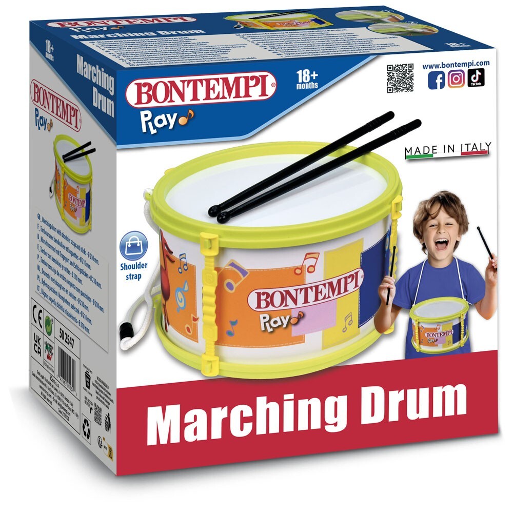 Pochodový buben s ramenním popruhem a paličkami • Realistický zvuk • Rozměr: 210×210×115 číst celé