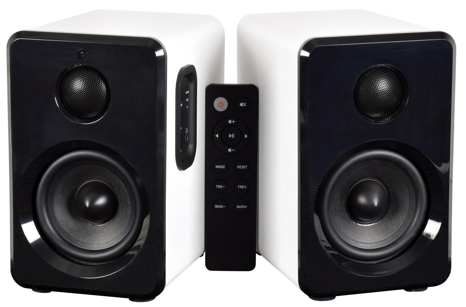 Aktivní sada malých kompaktních reproduktorů. Atraktivní a moderní design, kvalitní zvuk s dostatečným výkonem. Zabudovaný Bluetooth přijímač pro přehrávání hudby z mobilních zařízení, USB port a Micro SD slot pro přehrávání z paměťových médií. Linkový vstup AUX (Jack 3,5 mm) pro připojení externího přehrávače, televizoru, počítače nebo notebooku. Volba režimu přehrávání a regulace hlasitosti na bočním ovládacím panelu reproduktoru. Možnost pohodlného ovládání pomocí přiloženého dálkového IR ovladače. Výkon 2x 15W (8 Ohm), systém je osazen 3,5" basovými a 1" výškovými reproduktory, barevné provedení saténová bílá.