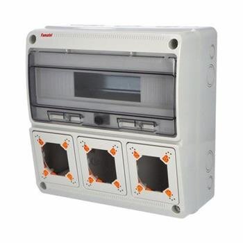 Plastová skříň AcquaCOMBI 3975 s otvorem pro umístění zásuvek, ve vyšším krytí IP65, rozměry: 330x330x150mm, (výška x šířka x hloubka), 16mod., IK08, plastová, materiál ABS, zkouška žhavou smyčkou 650°C, bezhalogenová a UV odolná, montáž na povrch, barva: světle šedá, rozsah teplot -25°C +85°C, aplikované normy: EN 62208, balení: 1ks (fólie), polykarbonátová průhledná dvířka, PE svorkovnice součástí (2x16 mm2 + 4x10 mm2) / N svorkovnice součástí (2x16 mm2 + 4x10 mm2), hladké boky (stěny) - pro vyvrtání otvoru a osazení vývodkou (vrchní a spodní strana má stěny s předlisovanými vstupy pro vyvrtání vstupního otvoru a následného osazení příslušnou vývodkou), schopnost rozptylu tepla: 34W. Pro montáž na hořlavé podklady je nutné použít nehořlavou podložku.Systém DoubleTWIST pro použití zásuvek jiných výrobců. Lze použít i pro sytém zásuvek LEGRAND, SCHNEIDER, MENNEKES, BALS, GEWISS, WALTHER, SCAME, PCE, IDE. Zásuvky uvedených systémů jsou použitelné dle dodané dokumentace - negarantujeme případné změny.