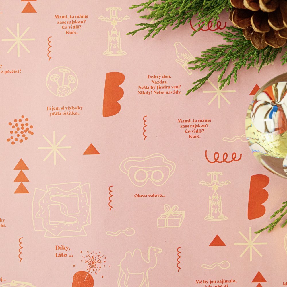 Autorské ilustrace jsou inspirovány ikonickým českým filmem Pelíšky. Na balicím papíru najdete hlášky z filmu a výstižné ilustrace.