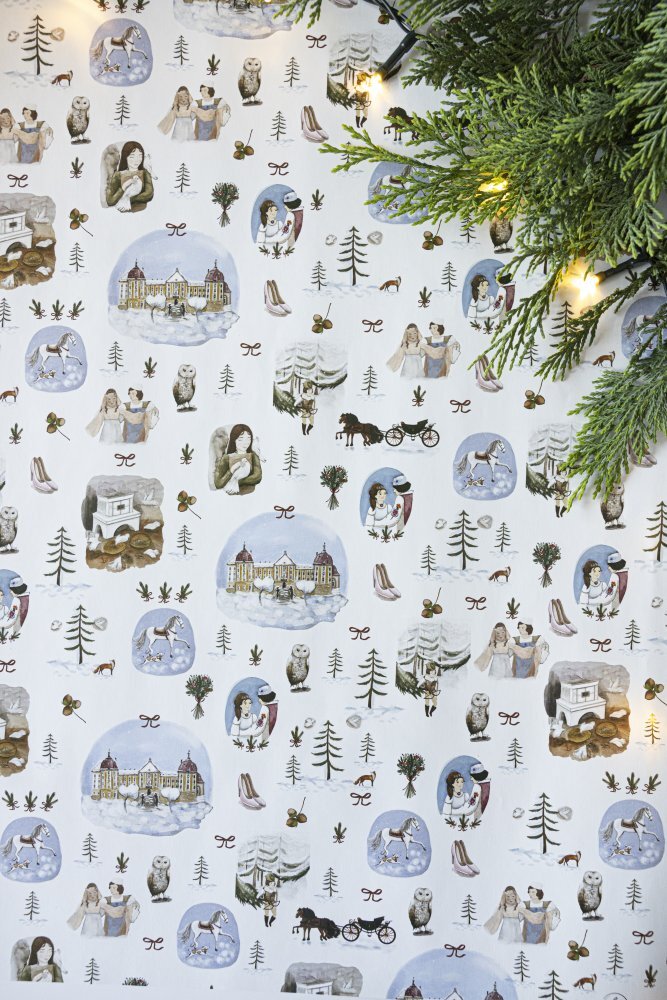 Vánoční balicí papír Popelka ilustrovala česká výtvarnice Bára z Nikolajky. Ilustrace byly vytvořeny technikou akvarelu a kreslení.