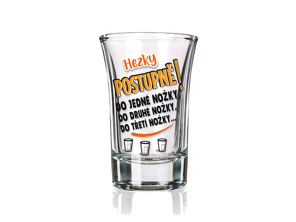 Vtipný panák s textem "Hezky postupně! Do jedné nožky, do druhé nožky, do třetí nožky...".