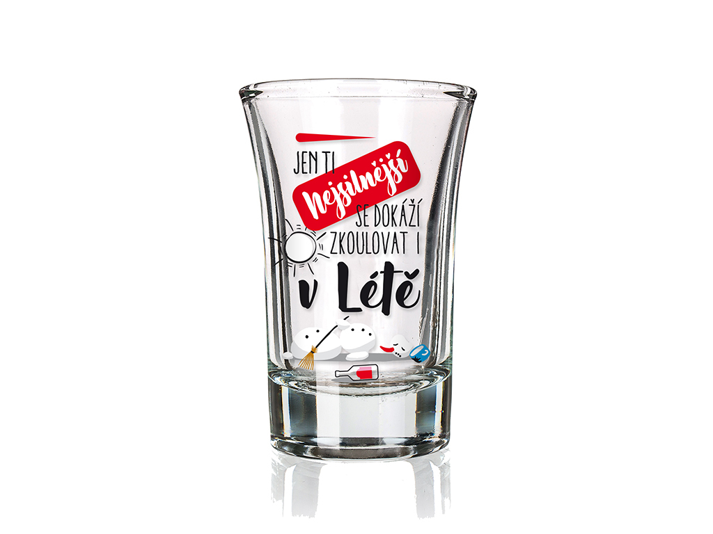 Vtipný panák s nápisem „Jen ti nejsilnější se dokáží zkoulovat i v létě“ přinese úsměv nejen vám, ale i vašim přátelům. Tento originální panák je perfektní doplněk pro každou příležitost, kde chcete zvýraznit dobrou náladu a společenskou pohodu.
