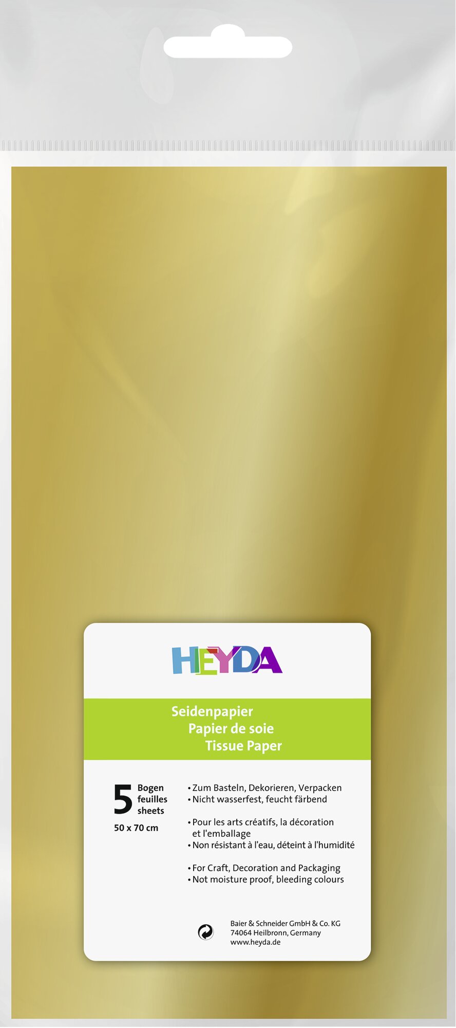 Hedvábný papír 50x70 cm - zlatý jednostranný, 5 listů