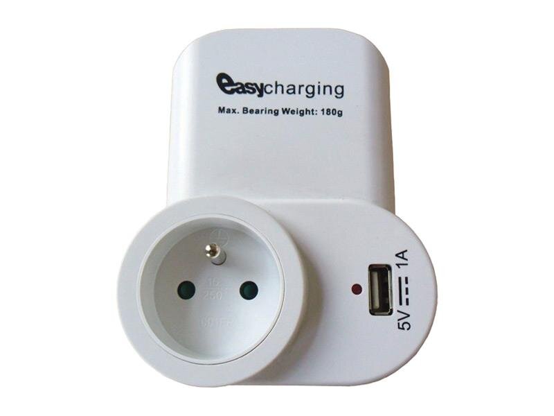 USB nabíjecí adaptér s průběžnou zásuvkou, 1000mA, držák na telefon, bílýIdeální pro dobíjení multimediálních zařízen Držák na GSM telefon, MP3 přehrávač apod, max. nosnost 180g - 1 x USB výstup typu A - 1 x uzemněná zásuvka 230V - vstup: AC 230V, 50Hz - výstup: DC 5V/1000mA AC 230V/max. 16A - dětská pojistka - bílá barva - balení blistr