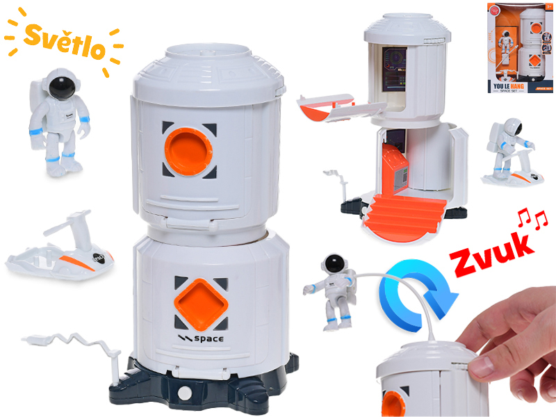 Space vesmírná stanice 20cm na baterie s doplňky se světlem a zvukem v krabičce