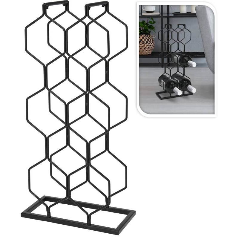 Barva: ČernáMateriál: kov s práškovým nástřikemRozměry: 23 x 11 x 48 cm (d x š x v)Pojme až 8 lahví