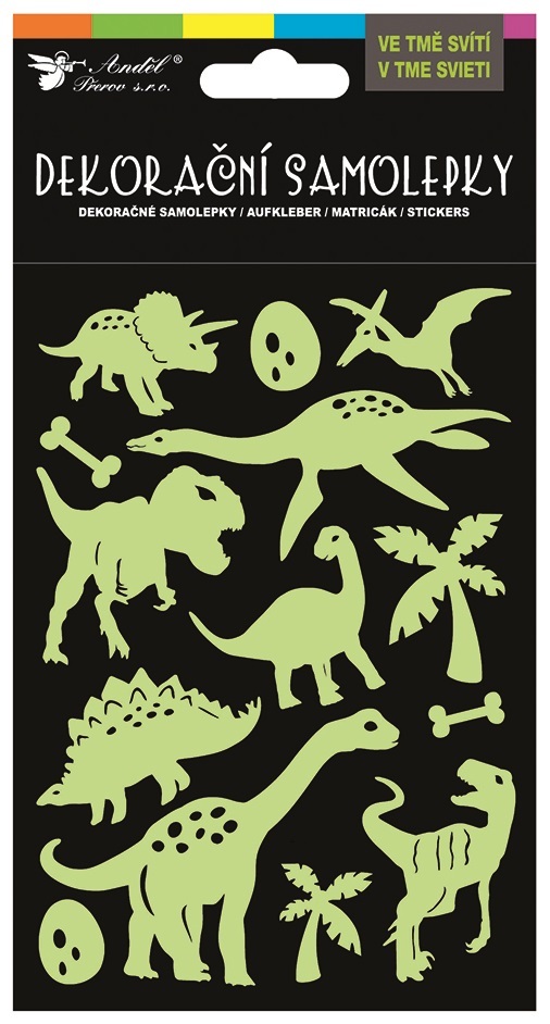 Samolepky 3D 10,5 x 20 cm svítící ve tmě, dinosauři