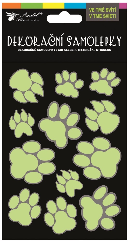 Samolepky 3D 10,5 x 20 cm svítící ve tmě, tlapky