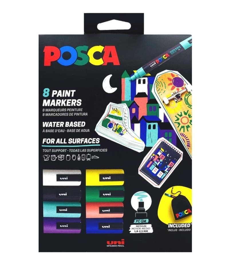 Posca sada popisovačů - mix barev (8 ks) + textilní sáček na popisovače