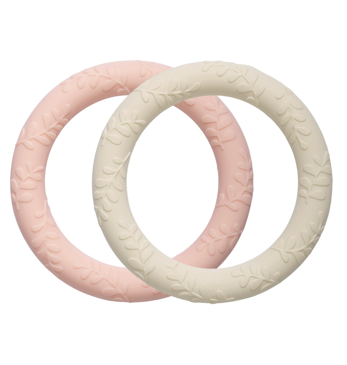 A Little Lovely Company - silikonová kousátka s listy - jahodový krém, 2 ks