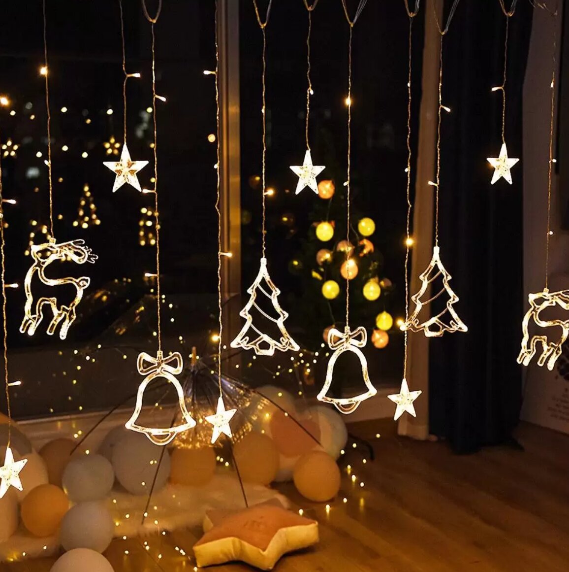 Světelný řetěz v originálních tvaru 6 kusů vánočních hvězd, 4 kusů zvonečků a 2 kusů jelenů. Je dlouhý 240 cm. Má LED světýlka, které vyzařují jasné a bílé světlo. Zdroj je na 200-240V / 50Hz. Součástí vánočního řetězu je programátor s 8 funkcemi osvětlení. číst celé