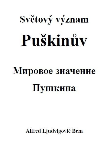 Vydáním tohoto spisu chci připomenout nejen postavu velkého Puškina – zakladatele moderní ruské literatury, ale také postavu velkého znalce ruské kultury a autora tohoto spisu Alfreda Ljudvigoviče Bema, který nakonec zahynul tak tragicky – nejspíše odvlečen sovětskou tajnou službou v roce 1945....