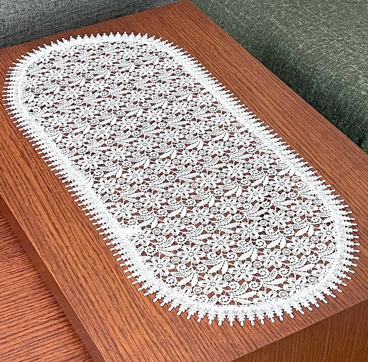 Kvalitní krajkový běhoun v moderním designu. Běhoun je nabízen v oválném provedení. Ubrus je odolný vůči nečistotám, neabsorbuje vodu. Ubrus je všestranným a stylovým doplňkem Vaší jídelny. číst celé