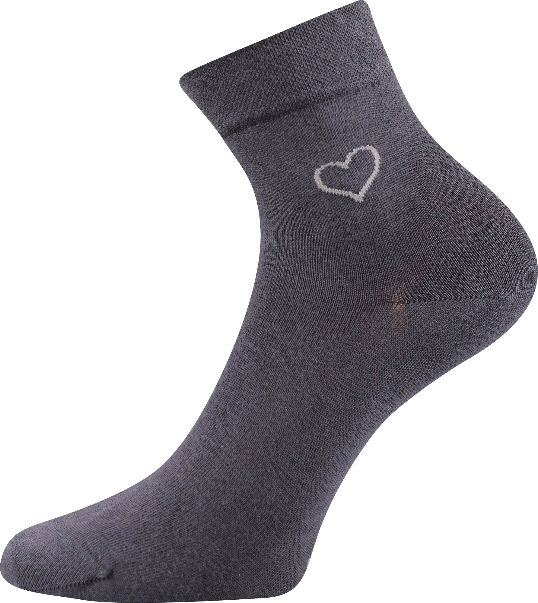 Dámské elegantní ponožky Lonka® FILIONA si oblíbíte hned, jak si je obléknete. Ponožky mají střední výšku nad kotníky zdobené motivem srdíčka, s velmi jemným a nestahujícím lemem. Z hladkého úpletu, pleteného na 200 jehlovém stroji, špičku mají spojenou plochým řetízkovým švem, který vůbec necítíte. Bavlněné ponožky jsou vhodné pro běžné nošení na doma i v práci.