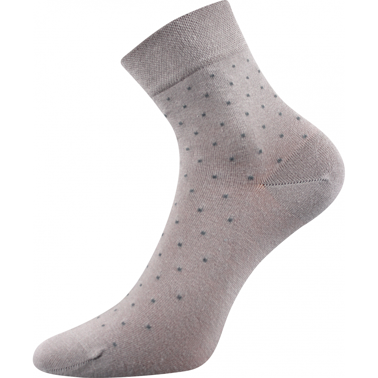 Dámské elegantní ponožky Lonka® FIONA si oblíbíte hned, jak si je obléknete. Ponožky mají střední výšku nad kotníky, zdobené jsou malými puntíky v decentních barvách. Pro vaše pohodlí jsou s velmi jemným a nestahujícím lemem. Kvalitní ponožky jsou z hladkého úpletu, pleteného na 200 jehlovém stroji, špičku mají spojenou plochým řetízkovým švem, který vůbec necítíte. Bavlněné ponožky jsou vhodné pro běžné nošení na doma i v práci.
