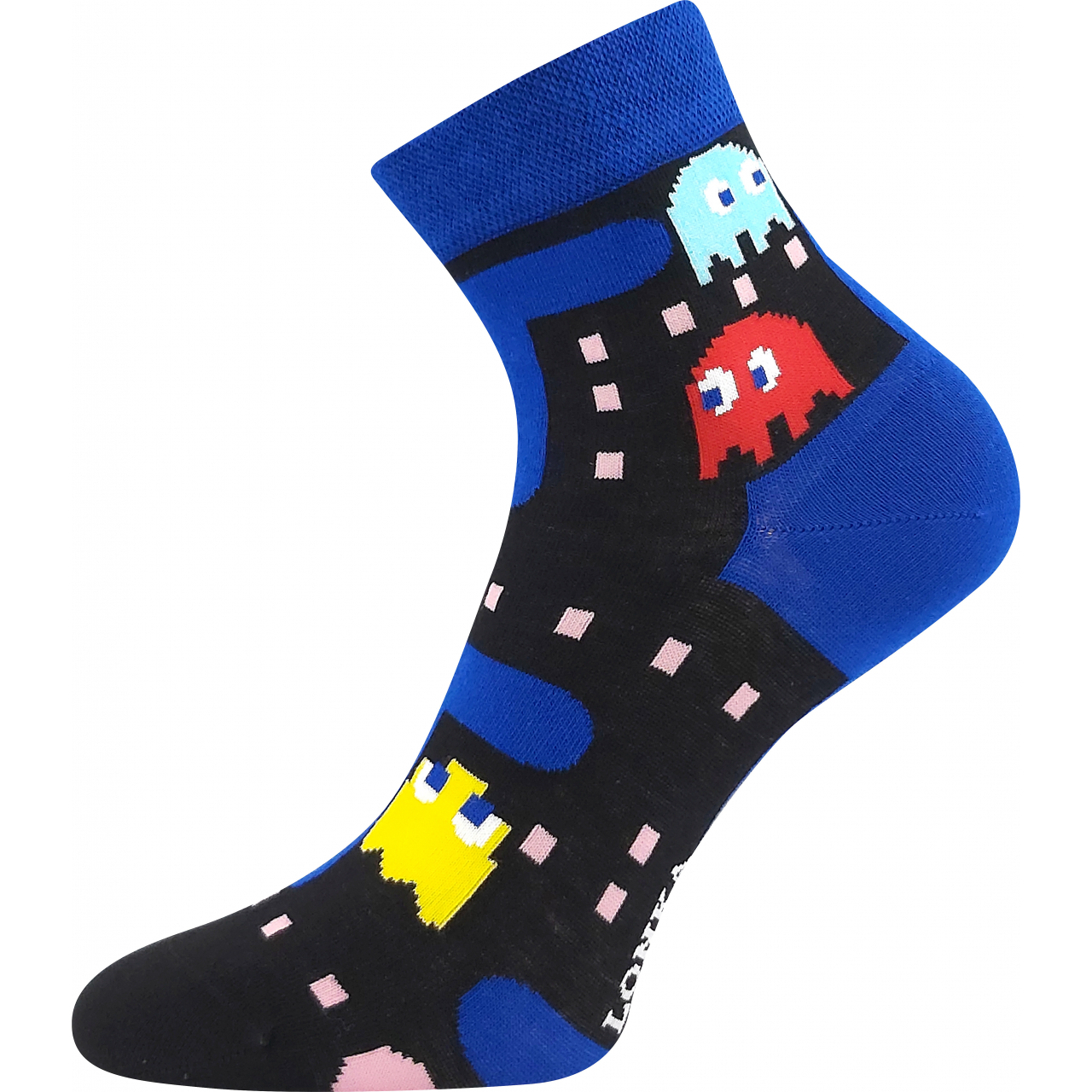 Unisex „trendy“ ponožky Lonka® DORWIN jsou módní obrázkové ponožky ve střední výšce nad kotník. Mix motivů na slabých ponožkách oživí váš letní či prázdninový outfit. Módní ponožky jsou velmi jemné a hladké díky 200 jehlového úpletu, takže každý detail obrázku je ostrý. Řetízkovaná špice nikde na prstech netlačí a nevznikají tak otlaky nebo puchýře, vysoce kvalitní česaná bavlněná příze s podílem elastanu dobře odvádí vlhkost, je příjemná na pokožce perfektně sedí na noze. Ponožky mají navíc volný nestahující pique lem.