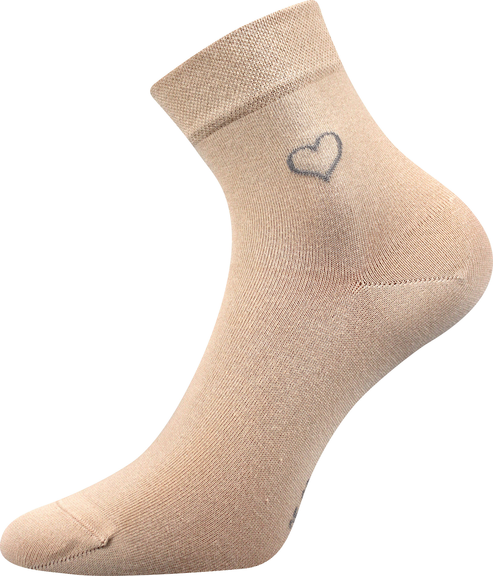 Dámské elegantní ponožky Lonka® FILIONA si oblíbíte hned, jak si je obléknete. Ponožky mají střední výšku nad kotníky zdobené motivem srdíčka, s velmi jemným a nestahujícím lemem. Z hladkého úpletu, pleteného na 200 jehlovém stroji, špičku mají spojenou plochým řetízkovým švem, který vůbec necítíte. Bavlněné ponožky jsou vhodné pro běžné nošení na doma i v práci.