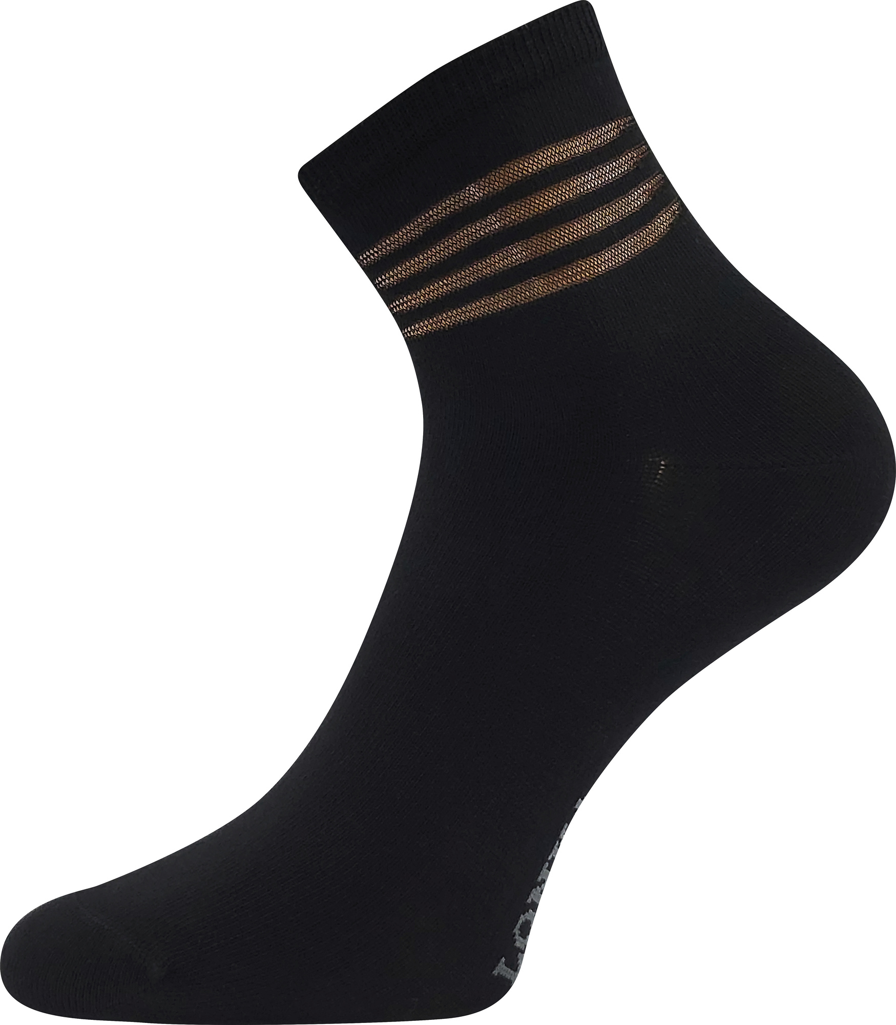 Dámské elegantní ponožky Lonka® FASKETA si oblíbíte hned, jak si je obléknete. Ponožky jsou zdobené decentními průhlednými proužky. Pro maximální pohodlí mají medicine nestahující lem, který neškrtí. Kvalitní ponožky jsou z hladkého úpletu, pleteného na 200 jehlovém stroji, špičku mají spojenou plochým řetízkovým švem, který vůbec necítíte. Bavlněné ponožky jsou vhodné pro běžné nošení na doma i v práci.